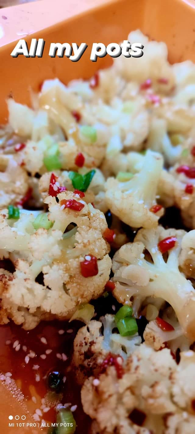 Kalafior zapiekany w orientalnym słodko - pikantnym sosie.Przygotowany we frytkownicy beztłuszczowej/airfryer